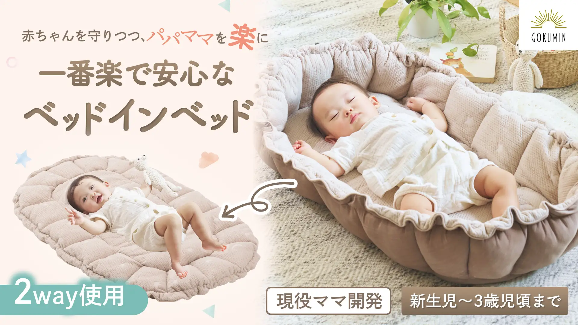 株式会社KURUKURU(本社:東京都中央区銀座、代表取締役:関沢康寛)が展開する総合寝具ブランド「GOKUMIN」は、2025年10月24日より、育児を少しでもラクに、赤ちゃんとの時間をもっと心地よくする、2WAY設計のベッドインベッド「ハグネスト」を販売開始いたします。「ママ目線」と「専門家の安心」を両立した設計で、お金がかかる出産準備も、これ一つで長く使えるお得なアイテムです。