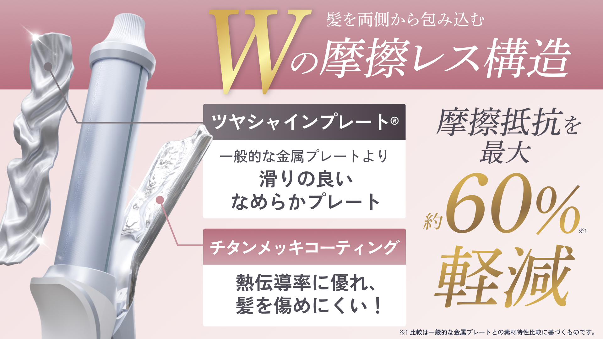 【髪を潰さず、うるおいを守る“W摩擦レスプレート”】