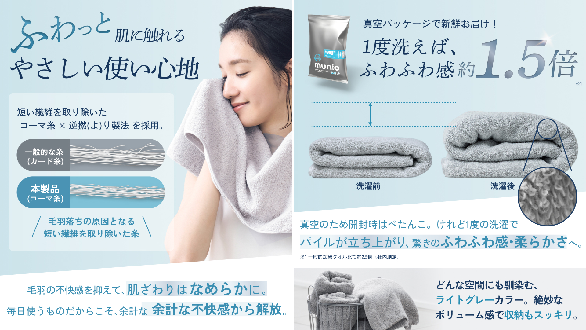 【MUNIO】「匂わない」を徹底追求したタオルブランドが新たに誕生。第一弾の商品として薬剤不使用の抗菌技術を採用した次世代タオル3種類が登場