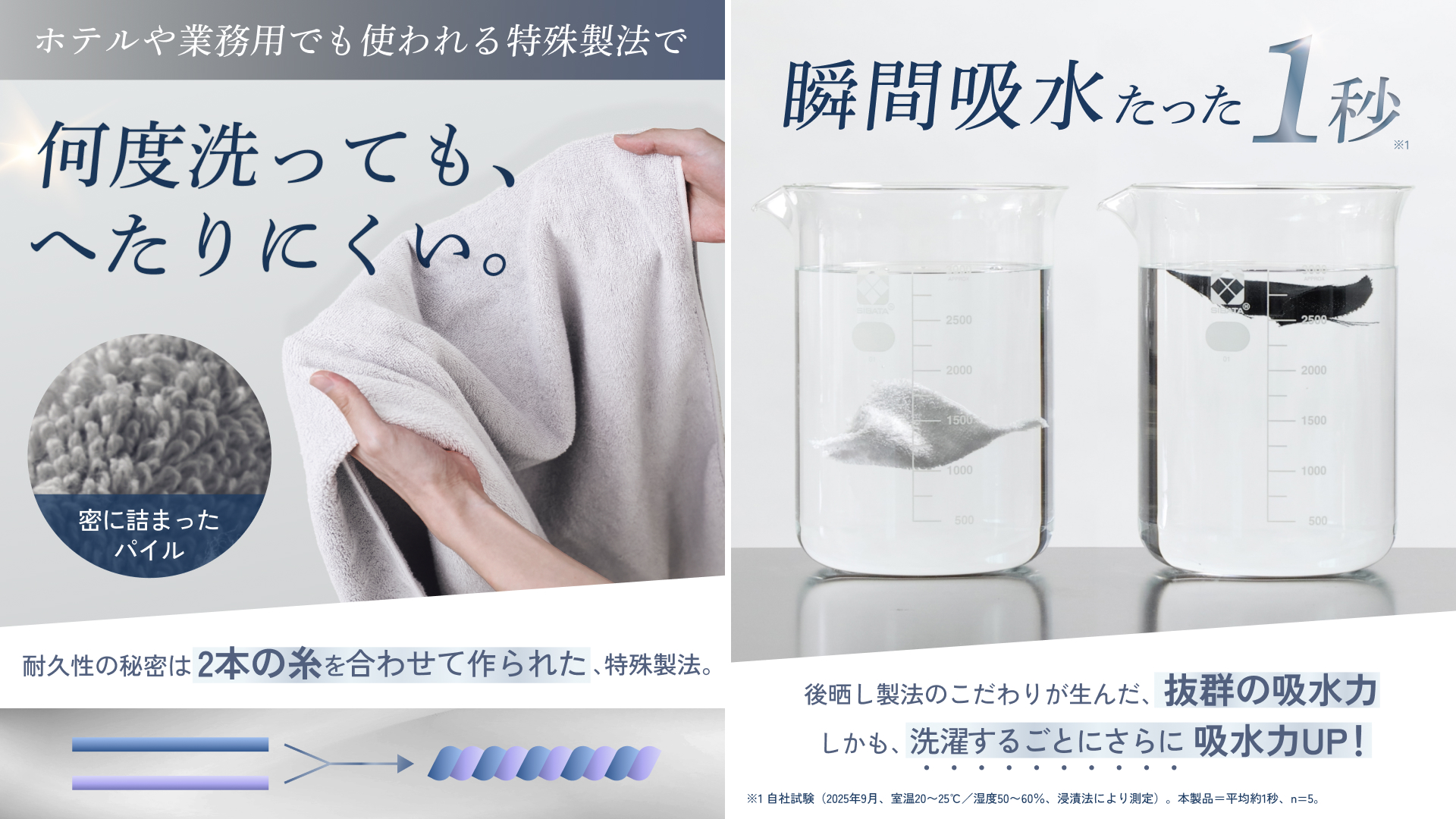 薬剤不使用でニオイ菌を抑制。清潔・速乾・高耐久を叶える、新時代のタオルブランドから機能的なタオル3種類を販売開始いたします。